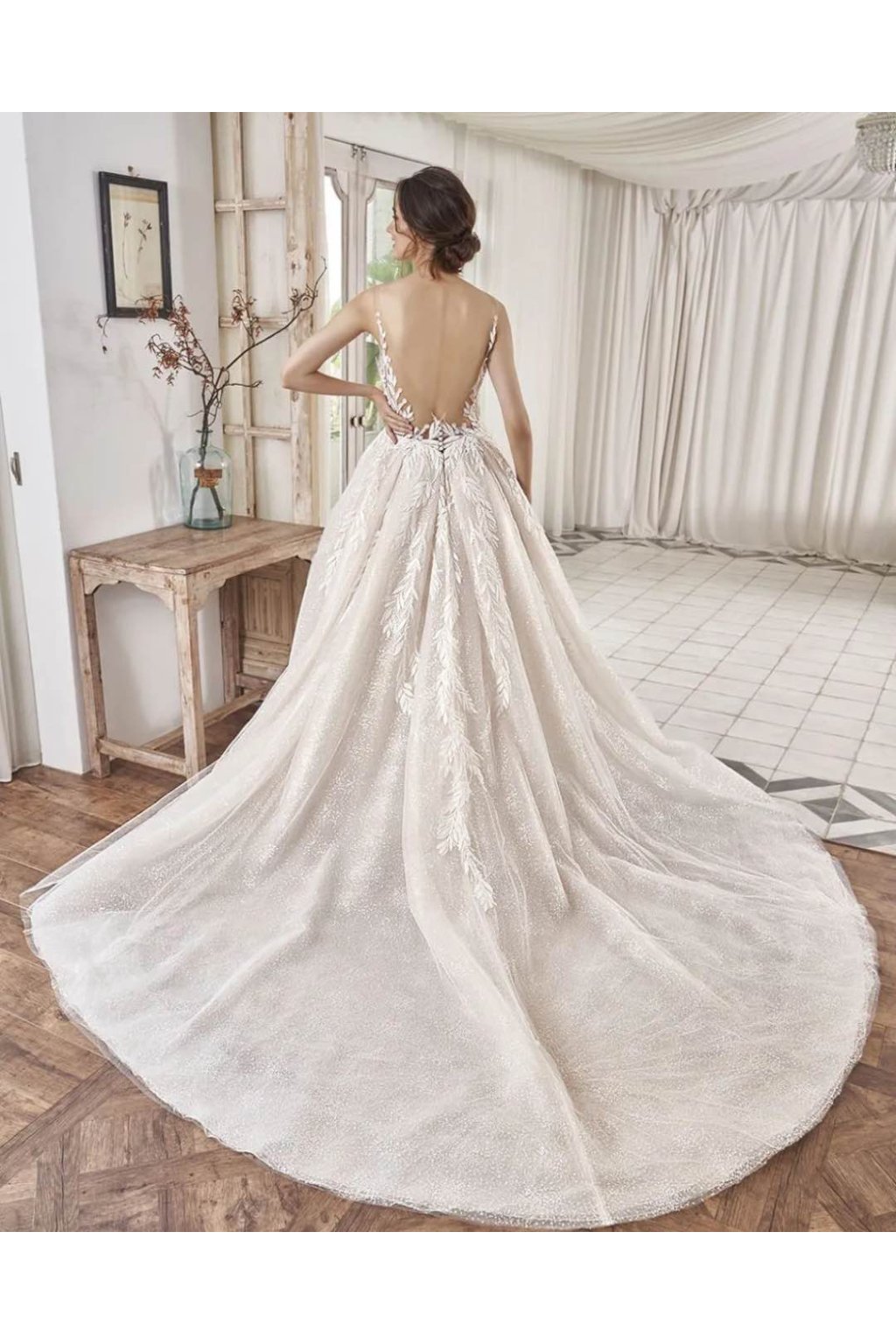 Svatební šaty s véčkovým výstřihem a otevřenými zády