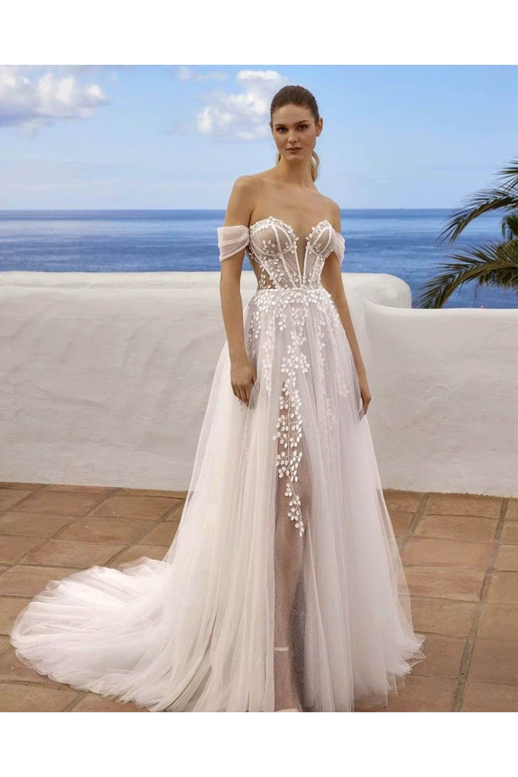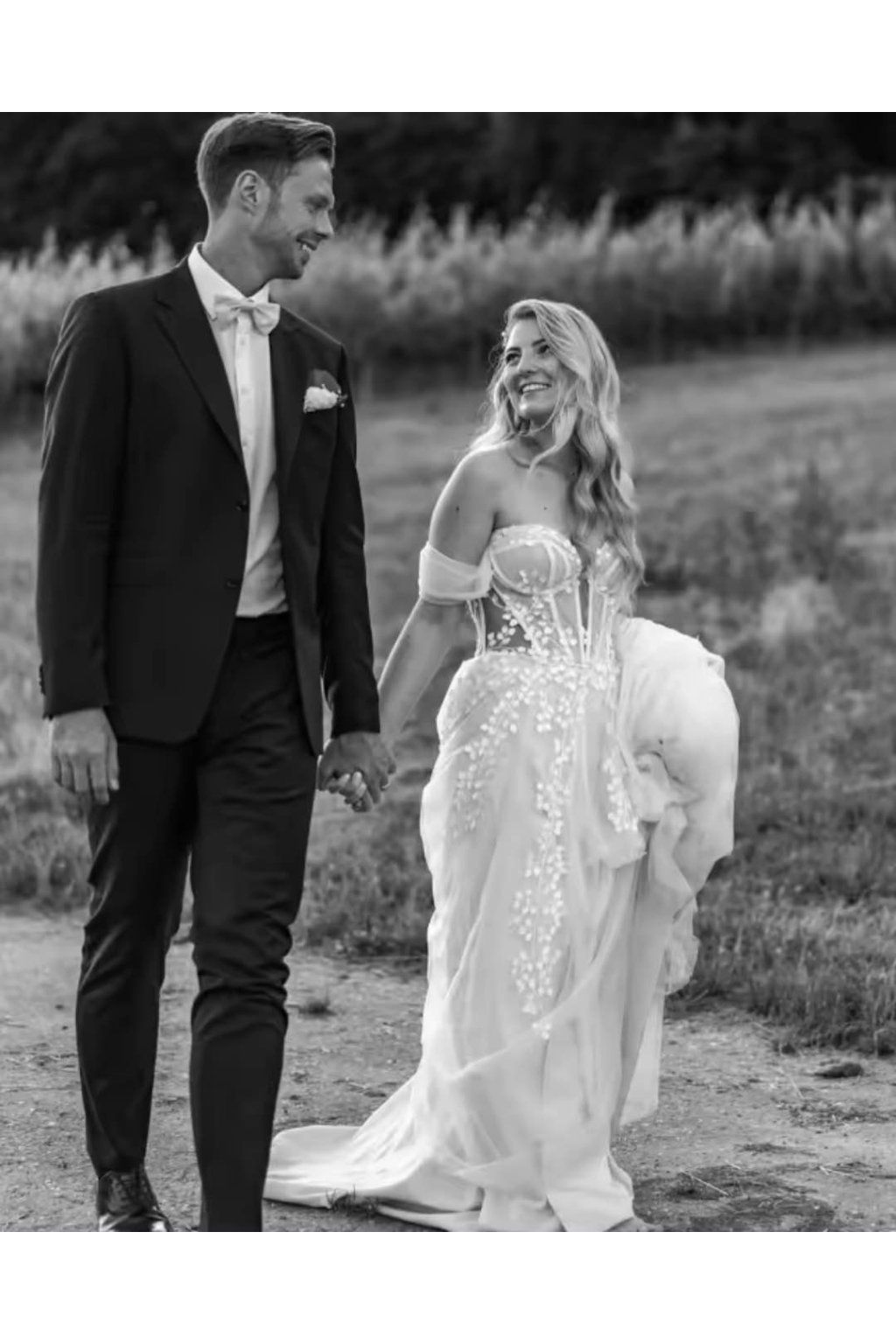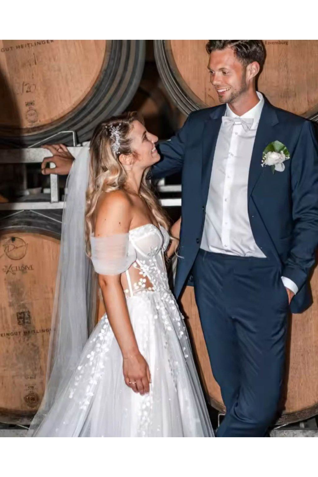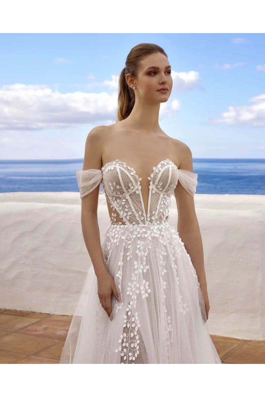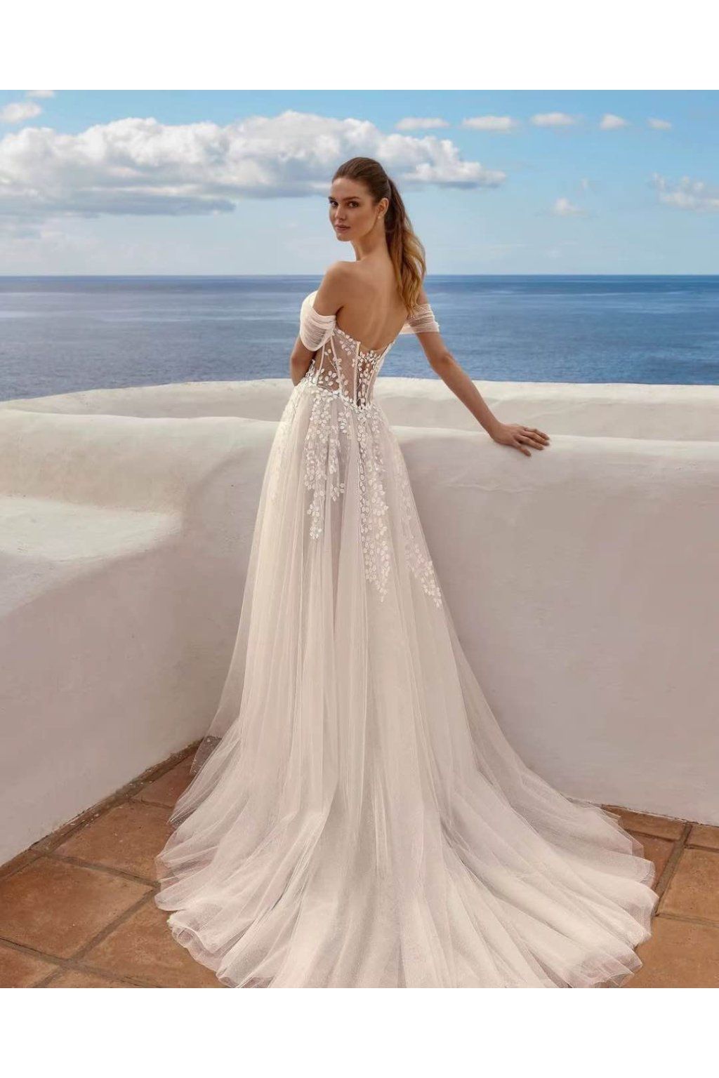 Model Marina je volba pro nevěstu, která chce klasickou eleganci s jemným „wow“ detailem. Střih A-line (do áčka) lichotí postavě, zvýrazní pas a pohodlně splývá — ideální na celodenní program i tanec.