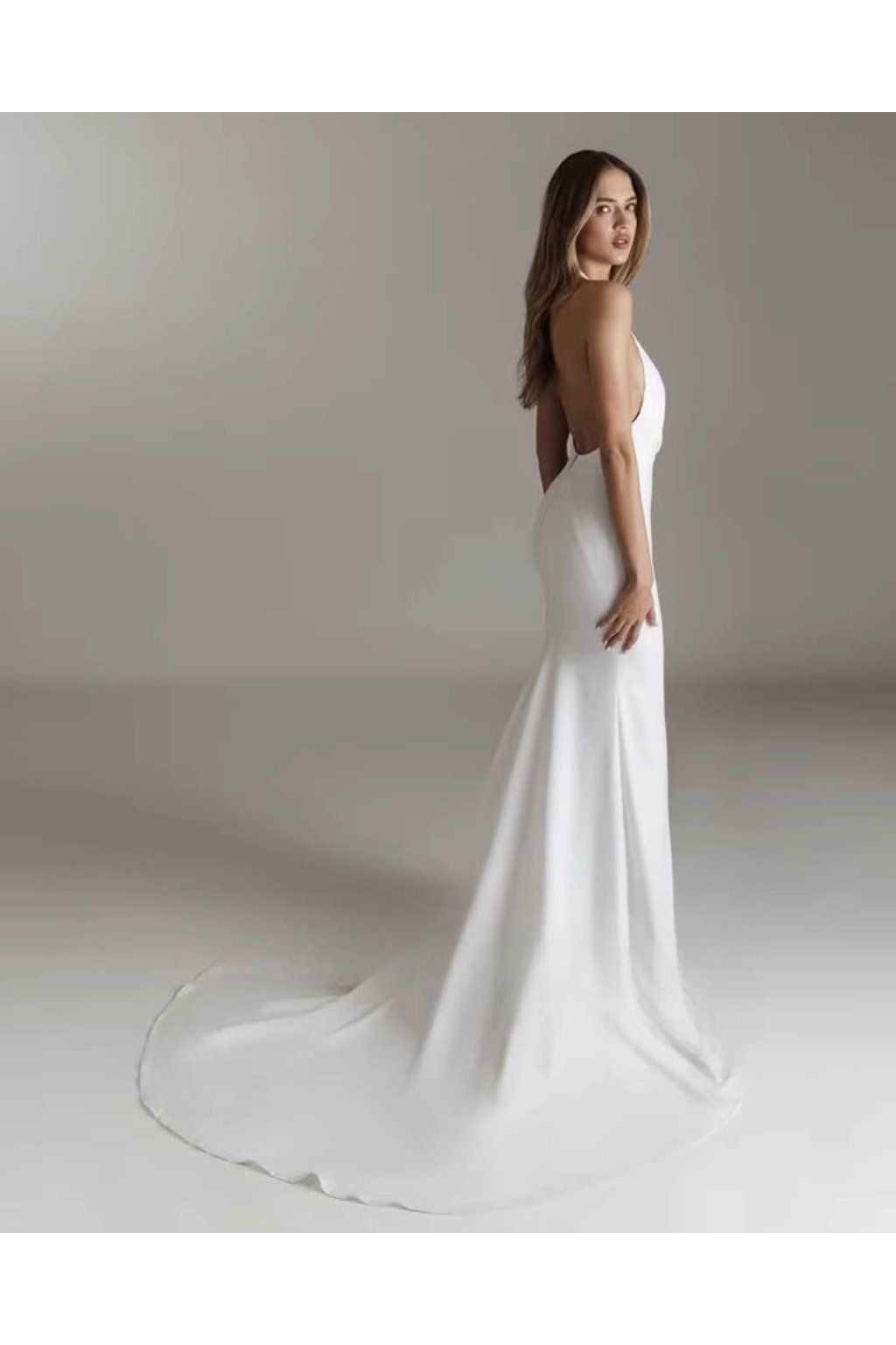 Noir jsou minimalistické saténové svatební šaty ve střihu mermaid, které zvýrazní křivky a působí luxusně i bez zbytečných ozdob. Halter výstřih krásně ukáže ramena, všitá podprsenka zajistí oporu a díky délce po zem bez vlečky se v nich budeš pohodlně hýbat celý den i večer.