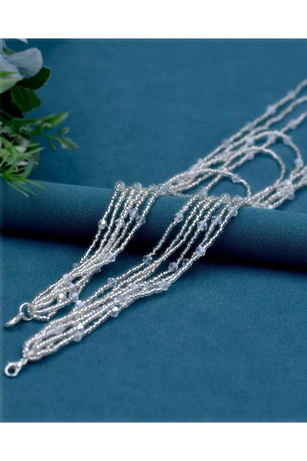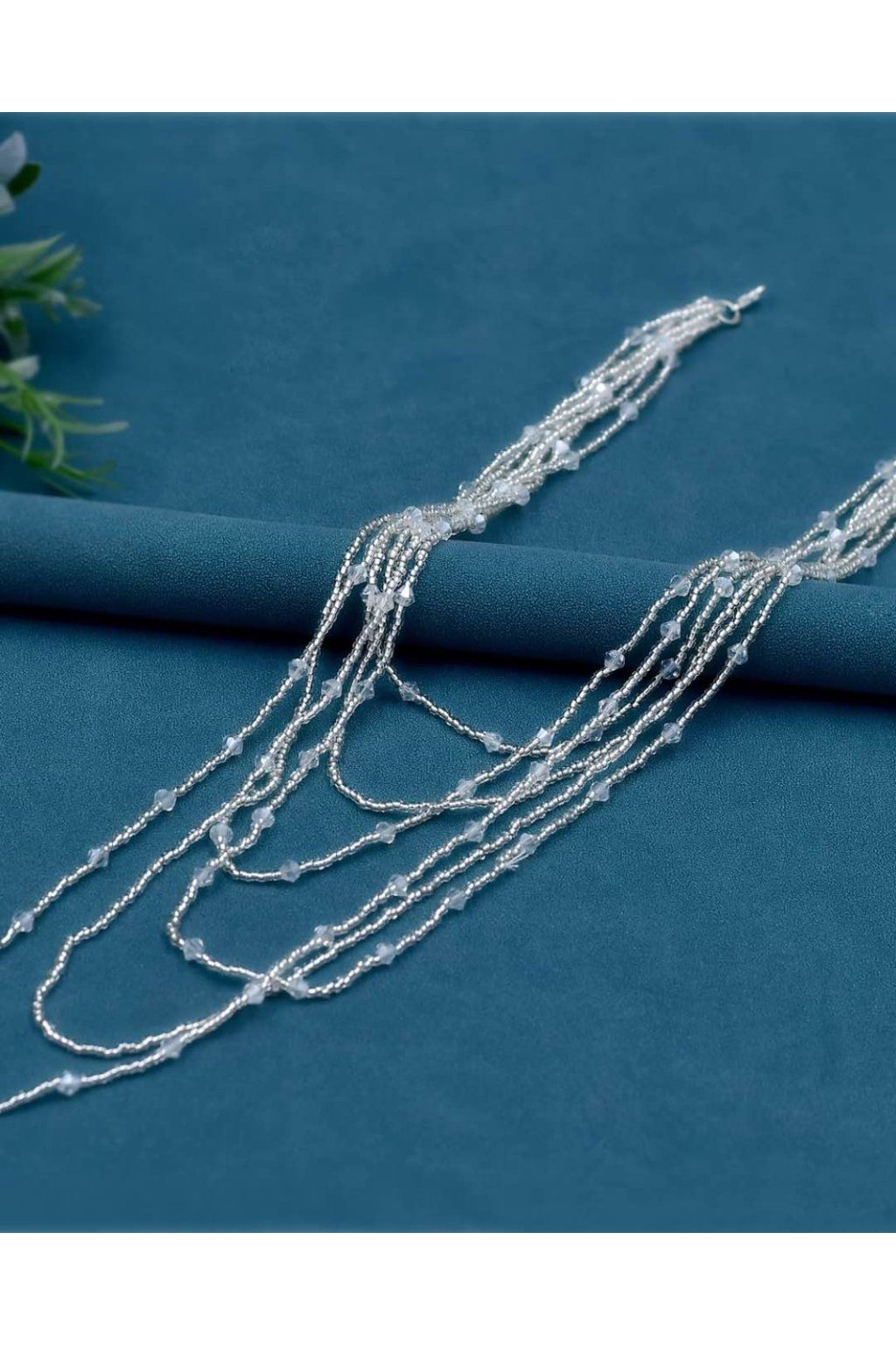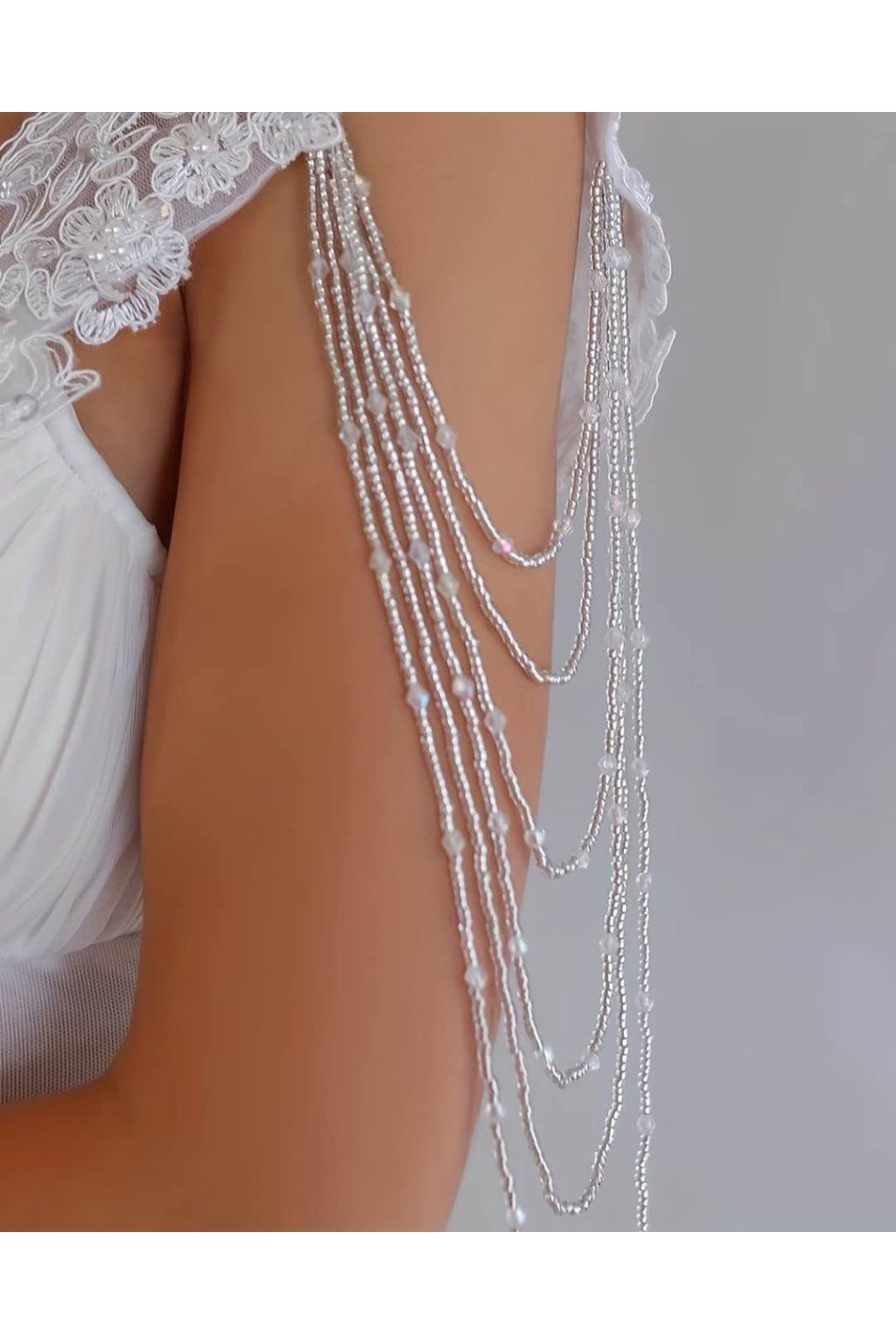 Jednovláknový ručně vyráběný křišťálový korálkový ramenní řetízek, odnímatelný vícevrstvý třásňový doplněk