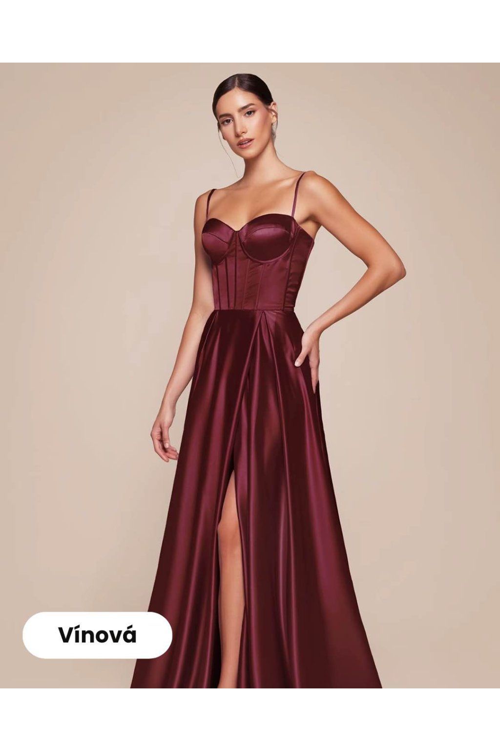 Společenské šaty Tera okouzlí elegantním a zároveň svůdným vzhledem, který krásně podtrhne ženskou siluetu. Model v jemném A-line střihu působí lehce a slavnostně, zatímco lesklý saténový materiál dodává šatům luxusní nádech.