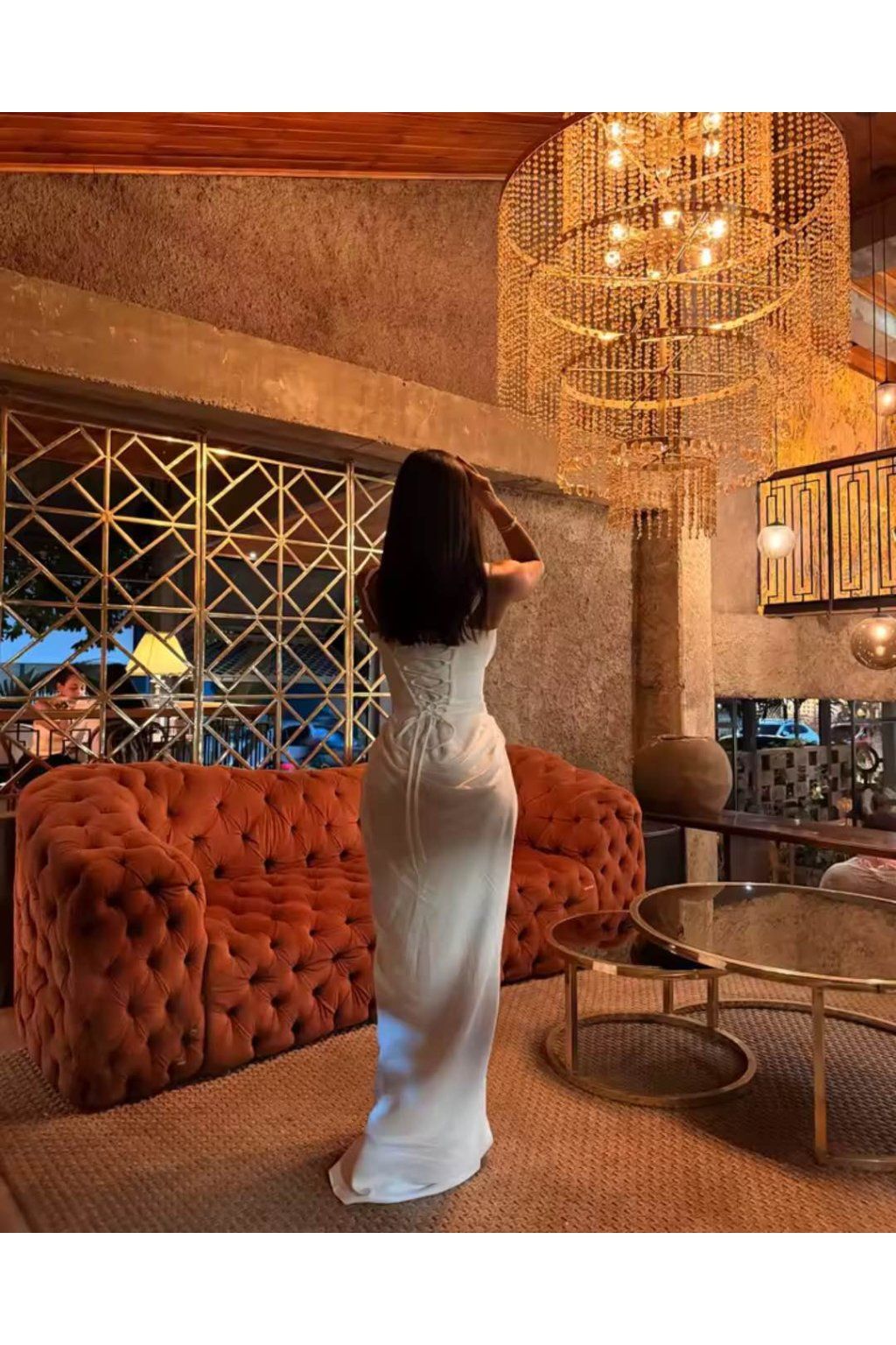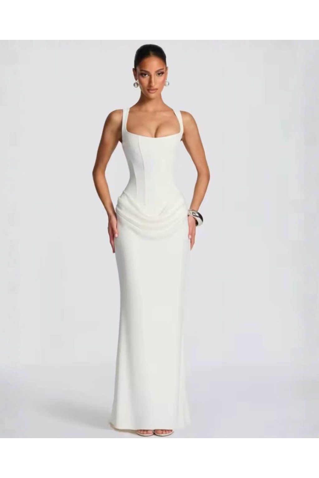 Elegantní šaty s hranatým výstřihem, přiléhavým střihem mermaid a jemným šněrováním krásně zvýrazní postavu. Stylový a ženský model na večerní, slavnostní i formální příležitosti.
