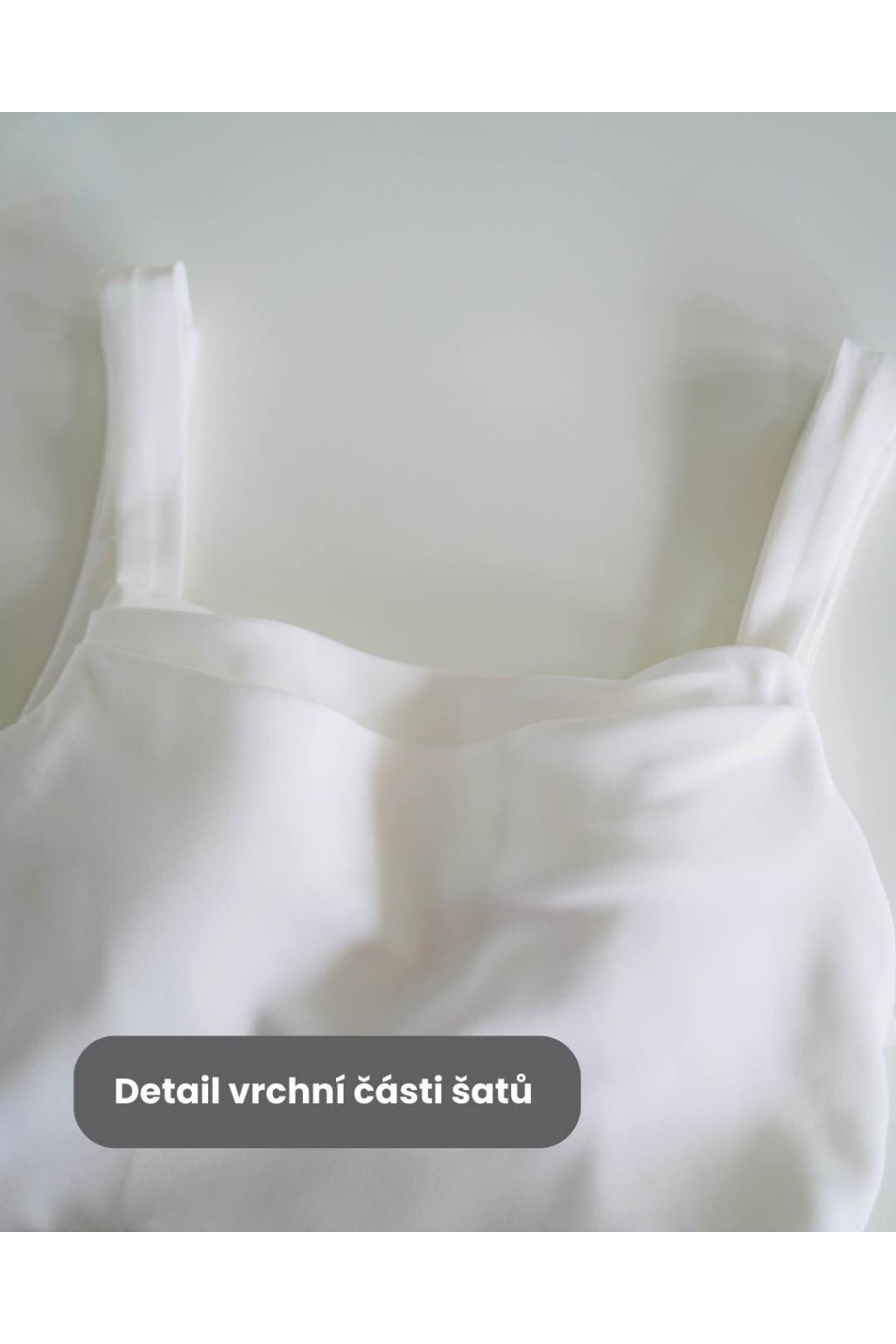Střih mermaid/trumpet zvýrazní křivky a prodlouží siluetu, takže šaty působí velmi sofistikovaně naživo i na fotkách. Hranatý (square) výstřih s jemným „illusion“ efektem krásně rámuje dekolt a ramena a tenká spaghetti ramínka podtrhnou lehkost celého modelu. Záda zdobí řada elegantních knoflíčků, které vytváří nádherný detail při chůzi i při obřadu zezadu.